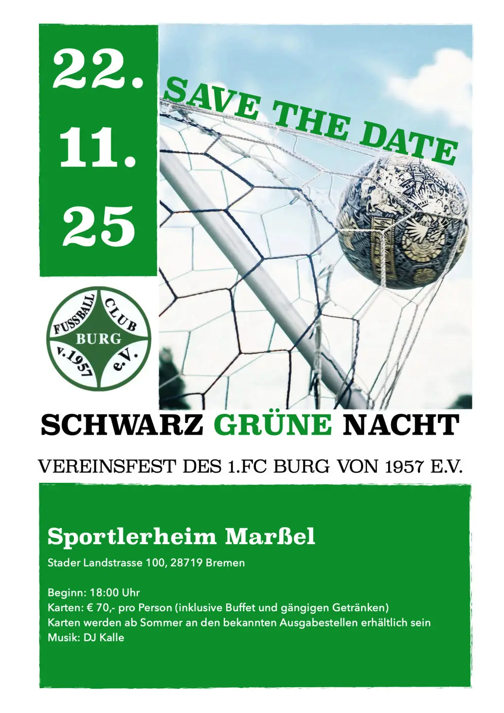 An diesem Tag ist wieder unser Vereinsfest, die Schwarz-Grüne-Nacht geplant.