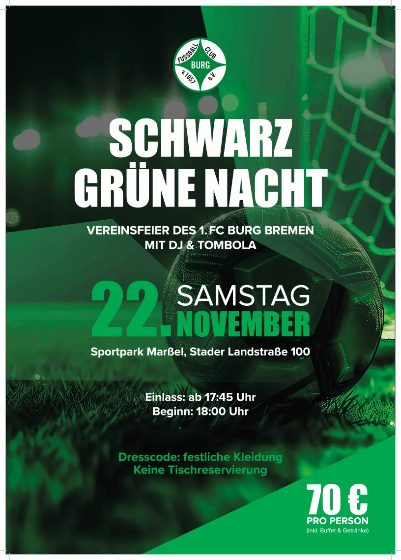 An diesem Tag ist wieder unser Vereinsfest, die Schwarz-Grüne-Nacht.